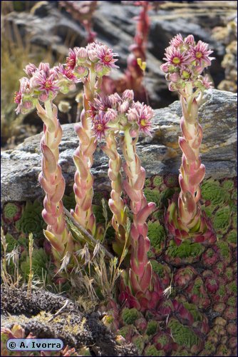 Spanien Rosetten meist kleiner als 3 cm im Durchmesser, Blätter 5 - 7 mm breit, zur Blütezeit oft kahl > 1