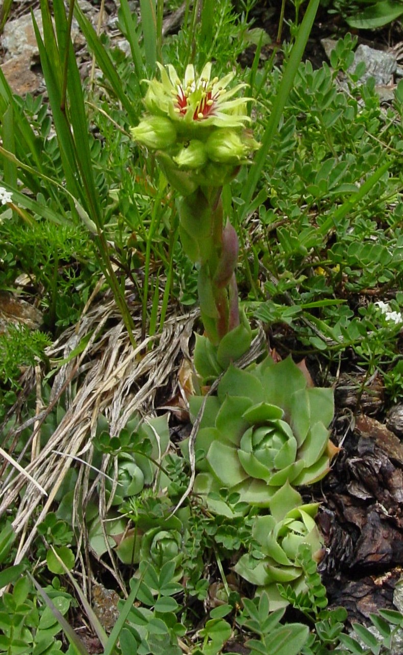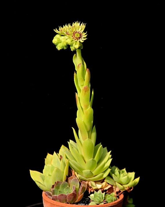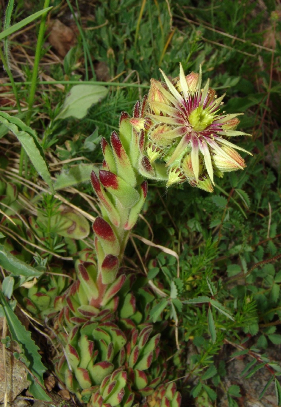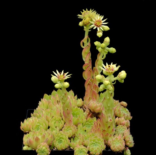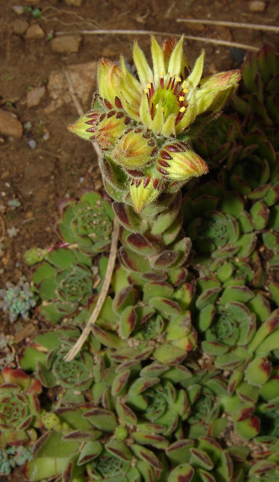 Sempervivum- Blüten gelb, Staubfäden rot
