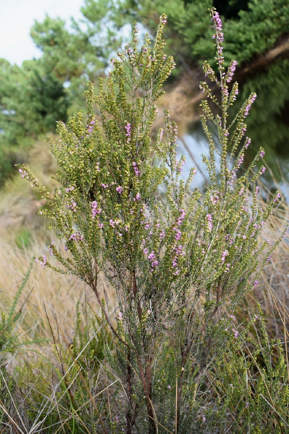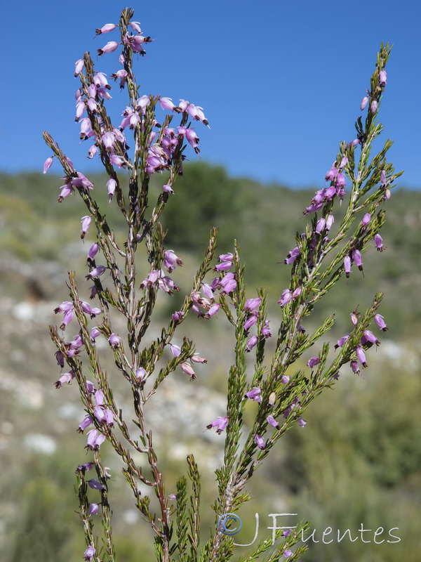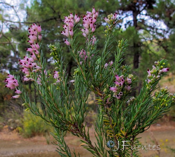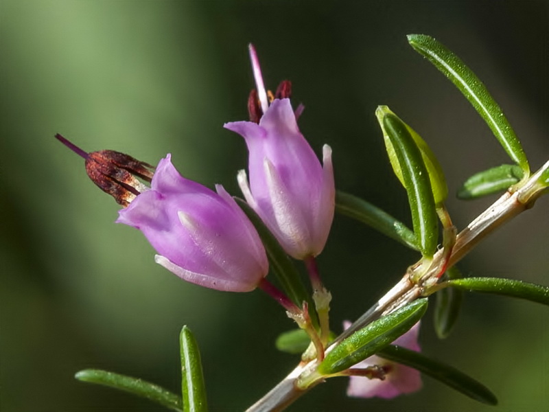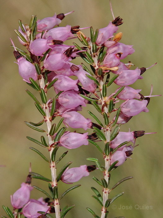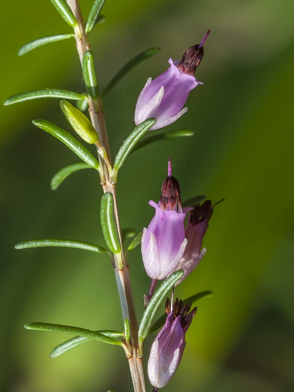 Erica - Blüten rosa, Staubbeutel ragen aus der Krone, Blütenstiel so lang wie die Kelchblätter