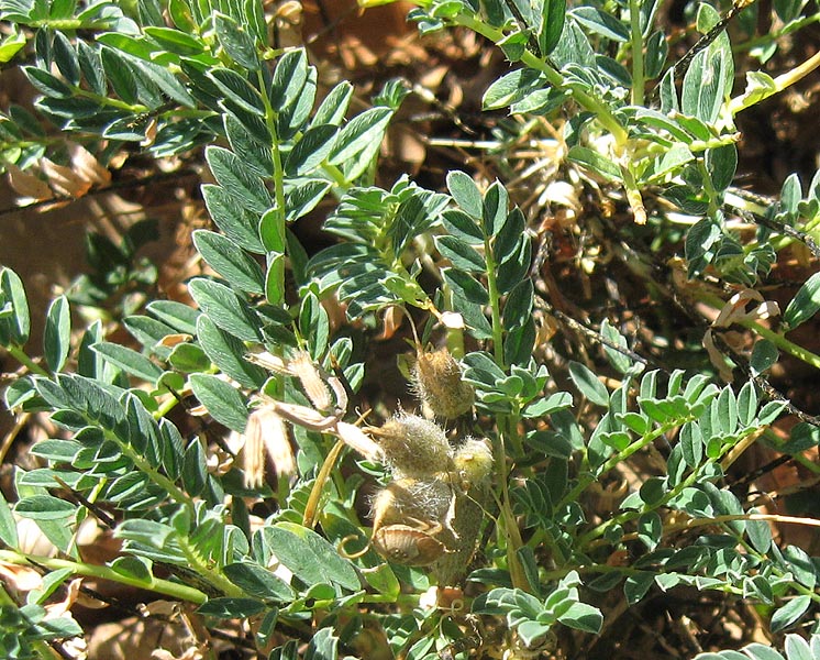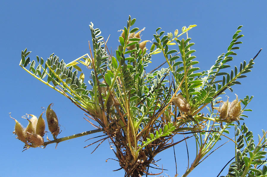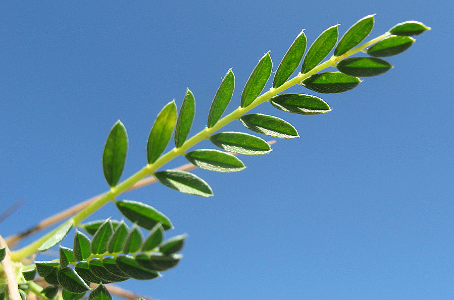 Blätter paarig gefiedert, 20 - 60 mm lang, mit 6 - 12 Fiederpaaren und endständigem Dorn, der oft noch ein Blättchen trägt