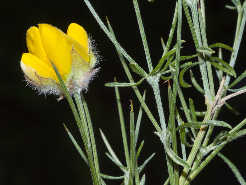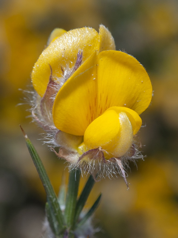 Verbreitung: Südspanien Zweige mit 8 Rippen Kelch mit langen, abstehenden Haaren, Fahne und Schiffchen dicht seidenhaarig > 2