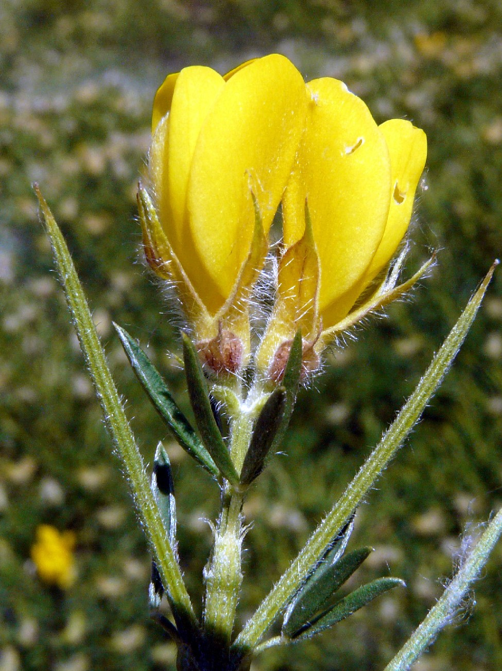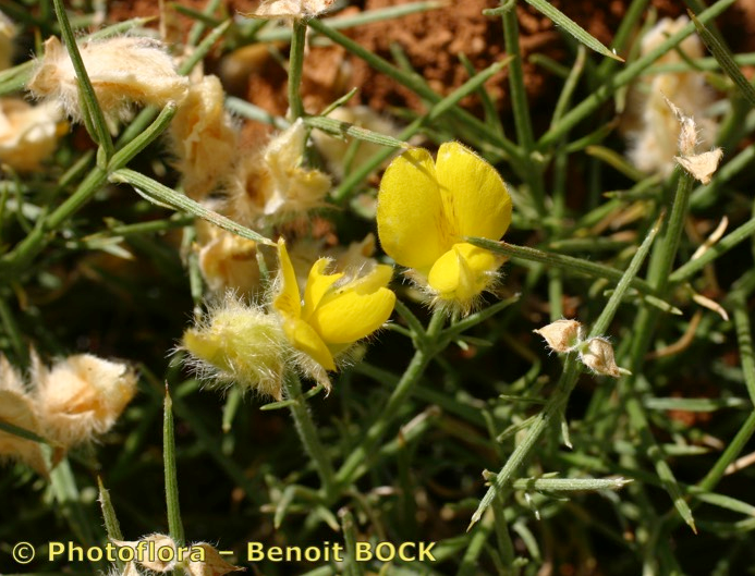 2 Verbreitung: Südspanien, Zweige mit 8 Rippen, Kelch mit langen, abstehenden Haaren, Fahne und Schiffchen dicht seidenhaarig