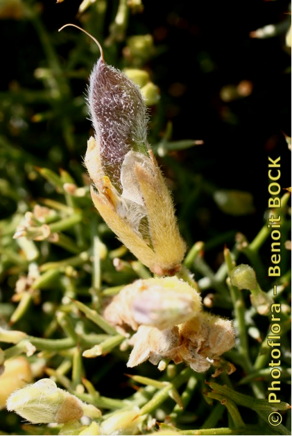 Phyllodien wechselständig Kelch bis zum Grund gespalten, Kelchoberlippe mit 2 winzigen Zähnchen Frucht kaum aus dem Kelch ragend > Ulex