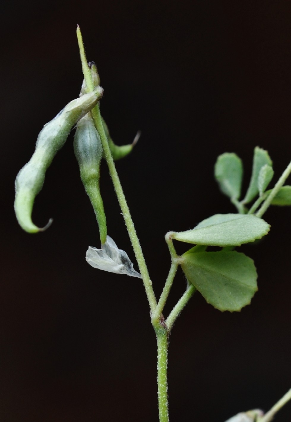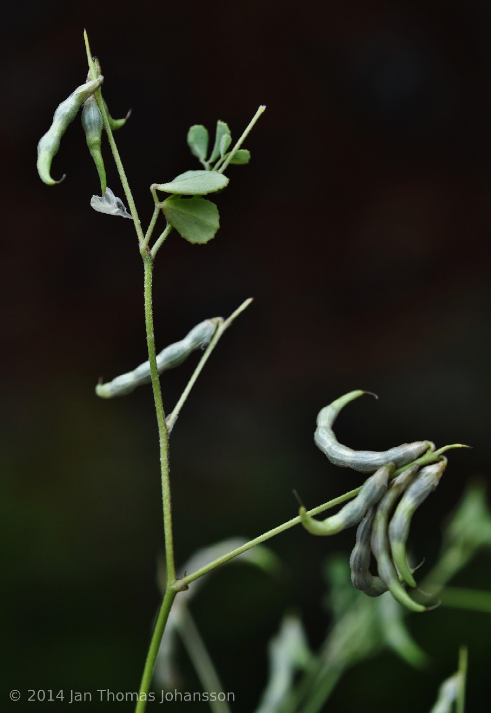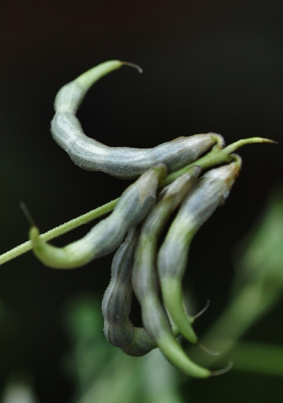 Hülsen 10 - 25 mm lang, 2 mm breit, eine lockere Traube bildend, zylindrisch, sichelförmig bis
