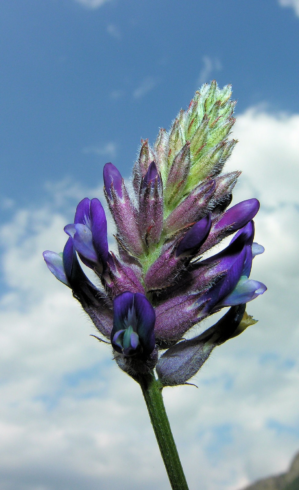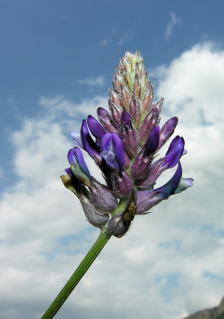 Friaul, Slowenien, Kroatien Stängel 10 - 15 cm Blütenstand elliptisch, Blütenstiele bis 28 cm lang, Blüten dunkelviolett, Blätter bis 11 cm lang, Blättchen bis 20 mm lang, oberseits spärlich behaart > 1