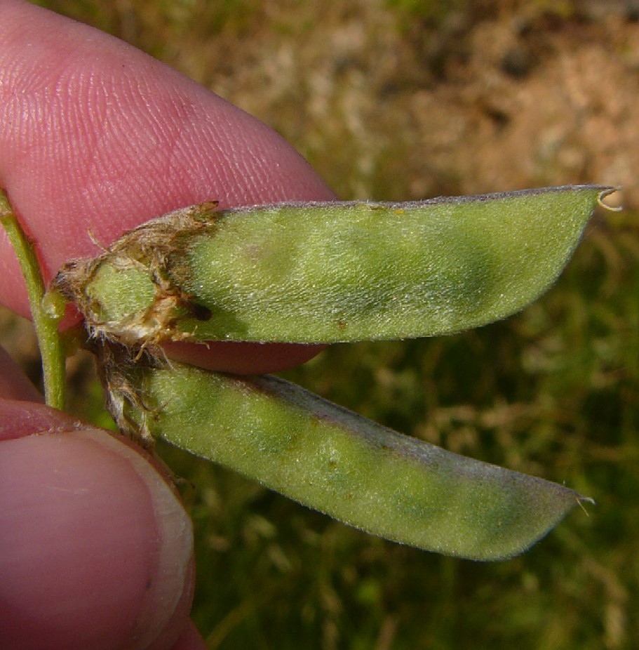 Kelch seidig langhaarig, Kelchzähne ungleich lang Kelchzähne langhaarig, die unteren meist deutlich länger als die glockige Kelchröhre Hülse 25 - 40 mm lang, 8 - 11 mm breit, behaart, kurz gestielt Stängel kantig, behaart