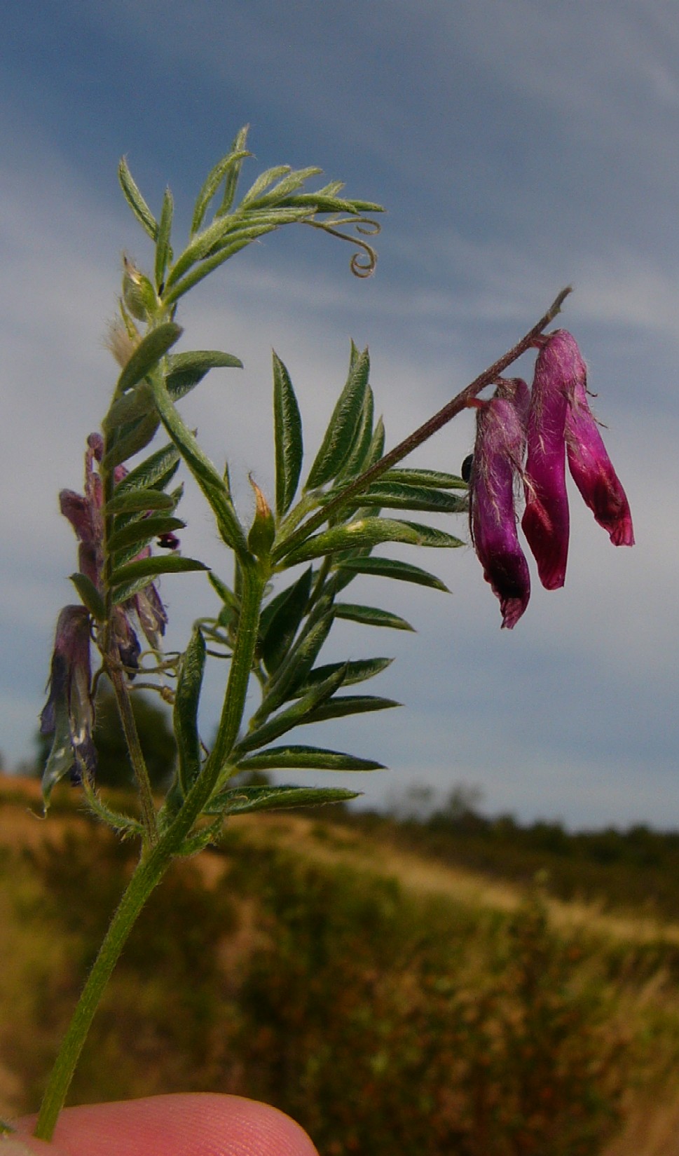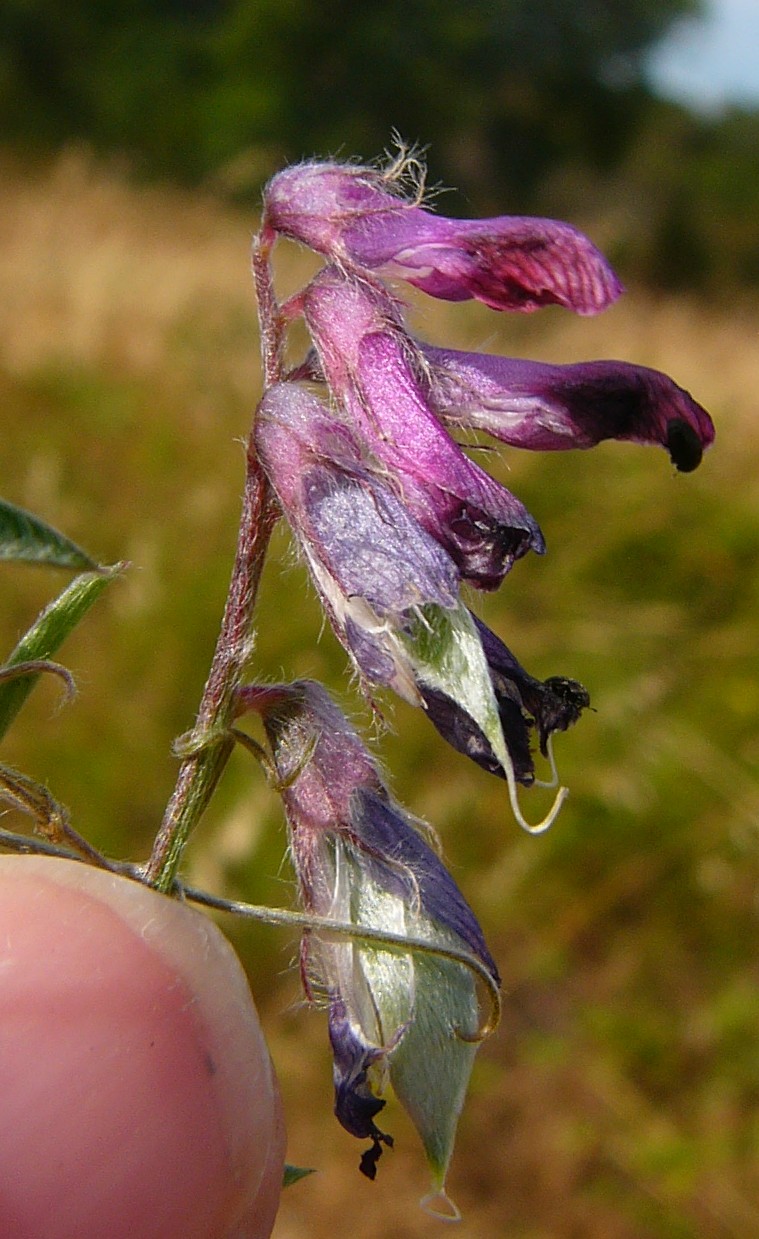 Vicia - Blüten rotviolett, Blätter meist mit mehr als 4 Fiederpaaren, Blütenstände lang gestielt, Pflanze dicht langhaarig