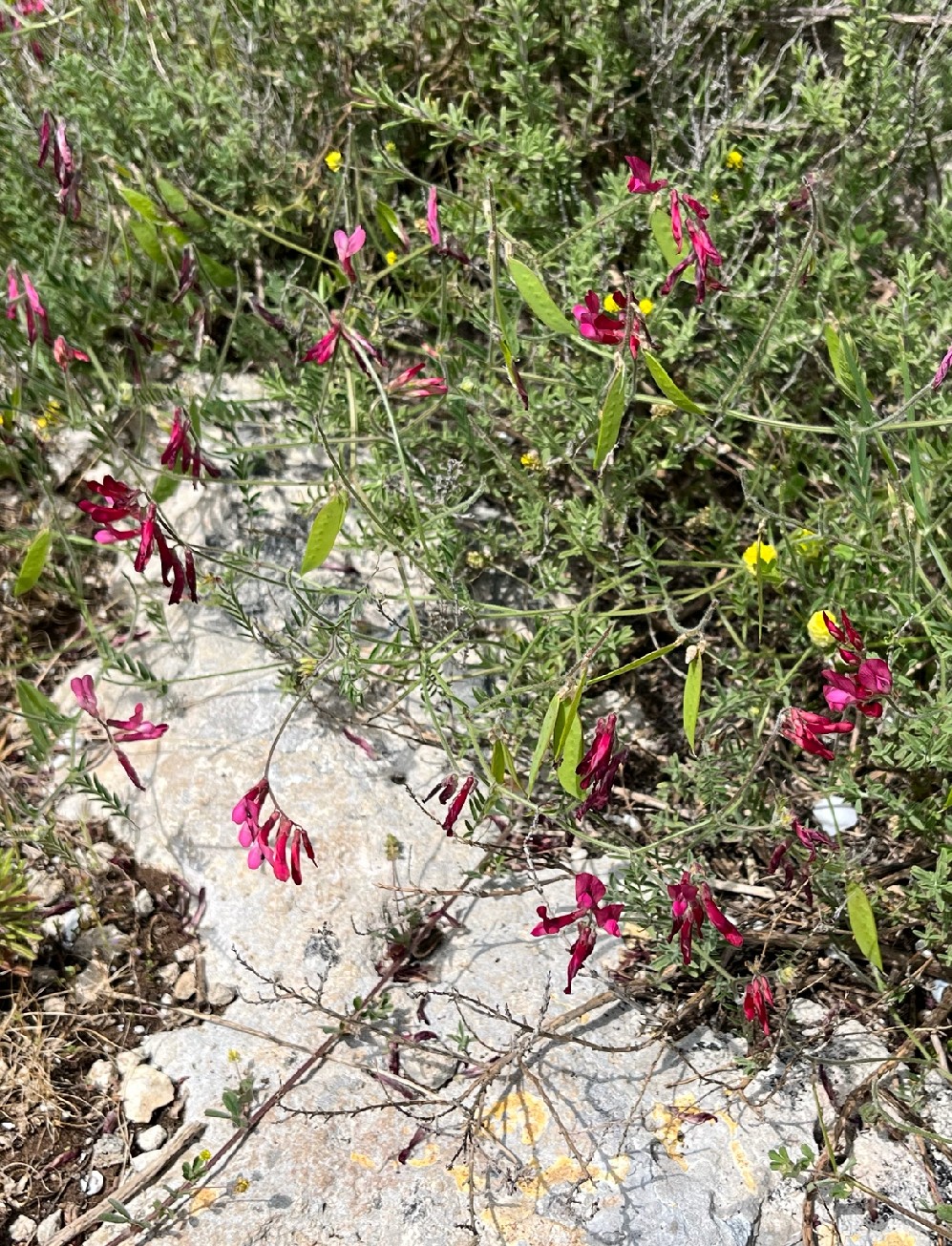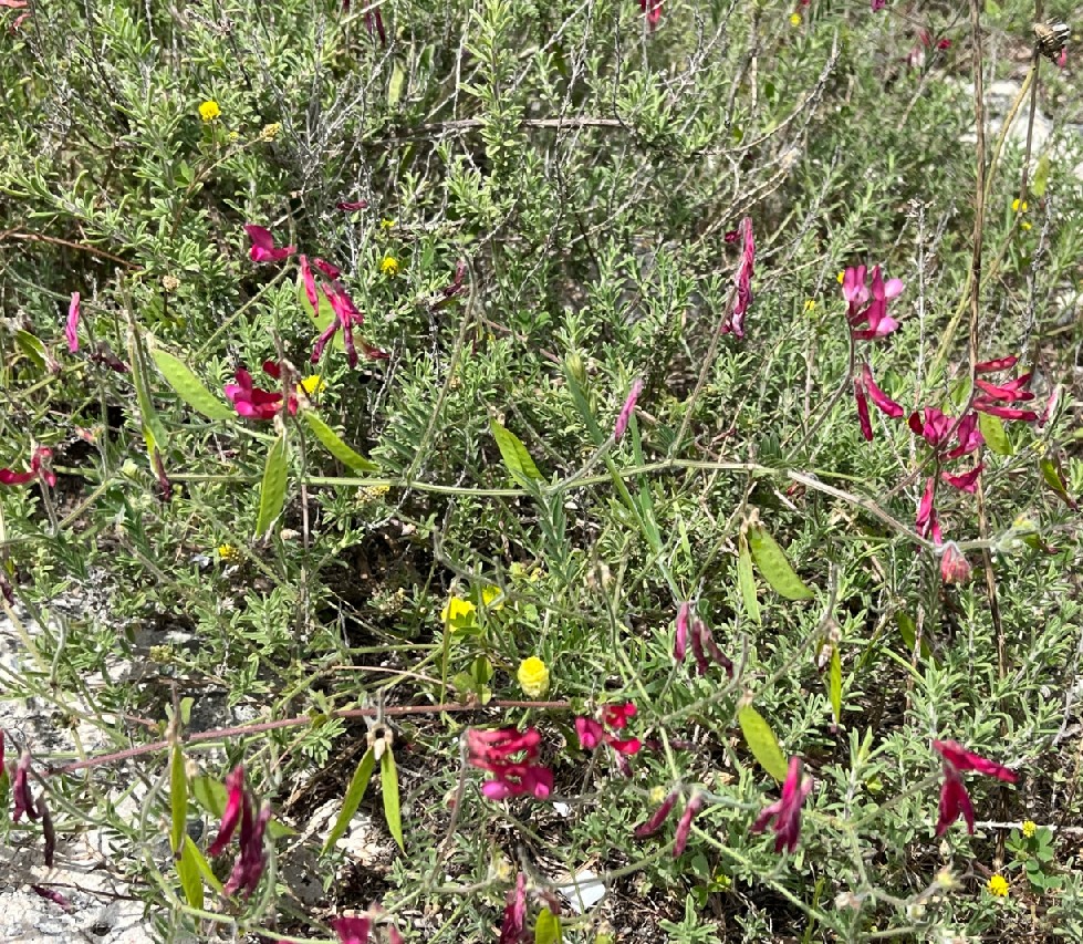 Weit verbreitete Art Fahne im unteren Teil rosa, vorne dunkelrot, Flügel dunkelrot Blütenstandsstiel meist kürzer als das Tragblatt > 2