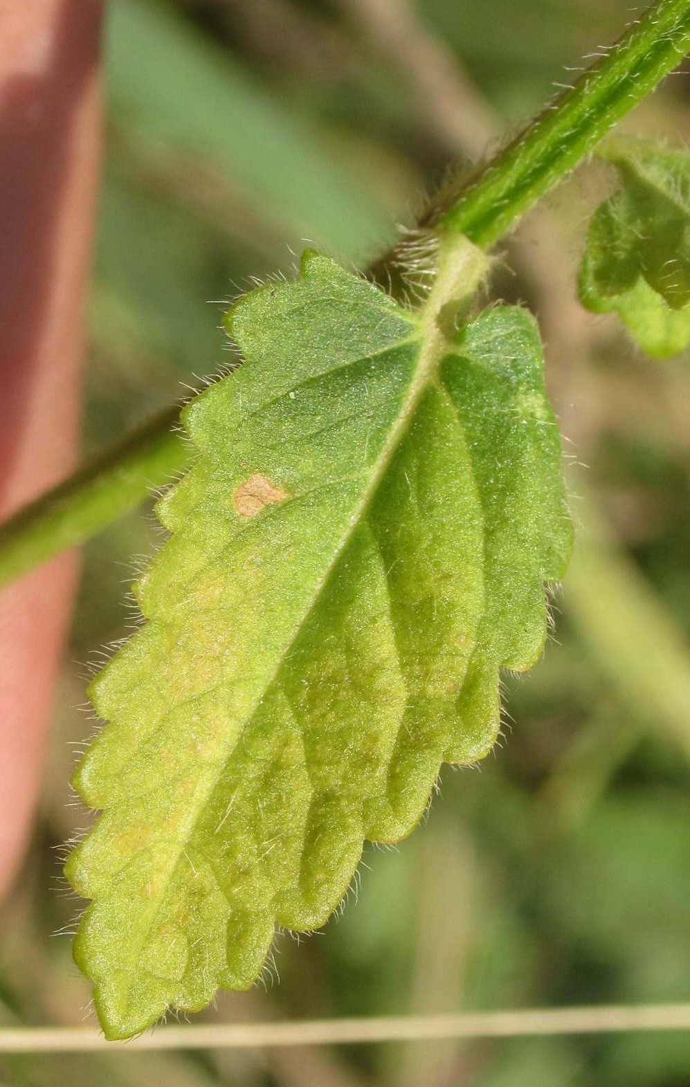 Teilblütenständen, Krone blassgelb, 12 - 16 mm lang, Oberlippe gekerbt Kelch behaart Untere Blätter am Grund herzförmig, lang gestielt Sterile Grundblattrosetten zur Blütezeit noch vorhanden