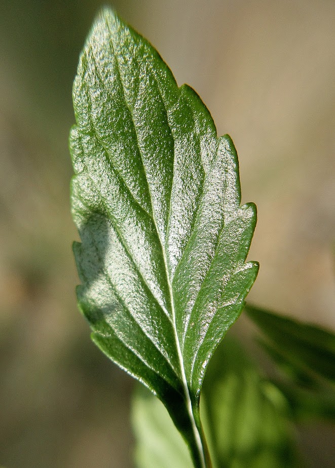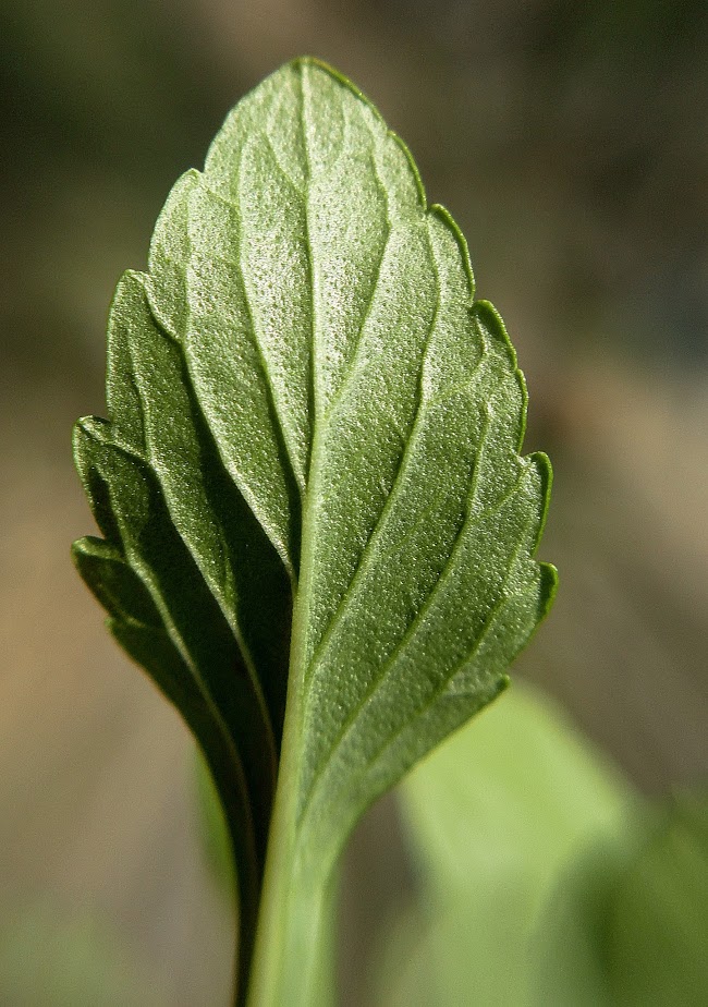 Blätter gegenständig, eiförmig, 10 - 20 mm lang, schwach gezähnt