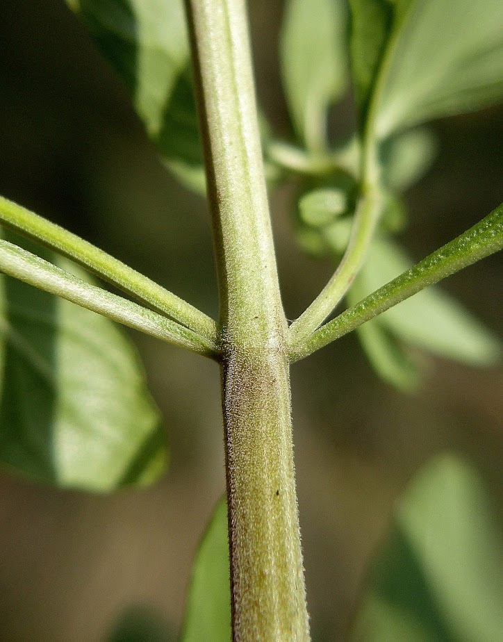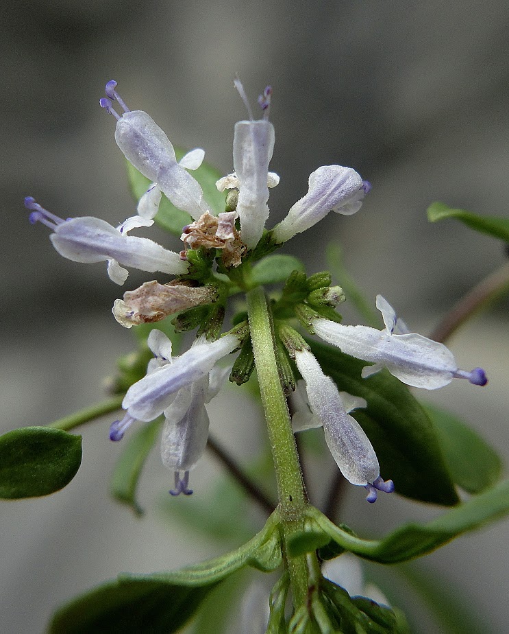 Kelch 3 mm lang, Kelchzähne so breit wie lang, außen samtig behaart, im Schlund ohne Haare Blätter gegenständig, eiförmig, 5 - 10 mm lang,