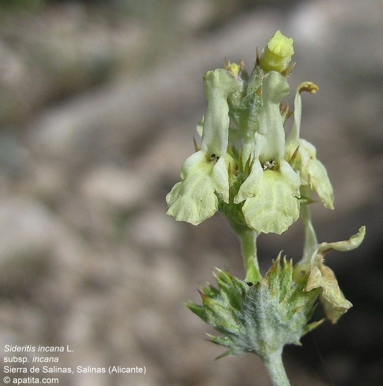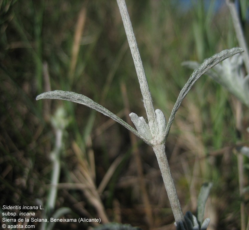Verbreitung: Sideritis incana ist eine sehr variable Art, die auch weiße oder rosafarbene Blüten (Sideritis incana ssp. sericea (Pers.) P. W. Ball ex Heywood) besitzen kann. Das Indument der Stängel und Blätter kann locker ( Sideritis incana ssp. incana L.) oder sehr dicht ( Sideritis incana ssp. virgata (Desf.) Malag.) sein.