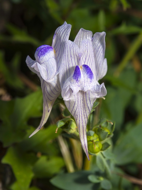 Oberlippe kurz, gestreift, Sporn 3 - 5 mm lang, Kronröhre schmal > Linaria repens/bubanii |