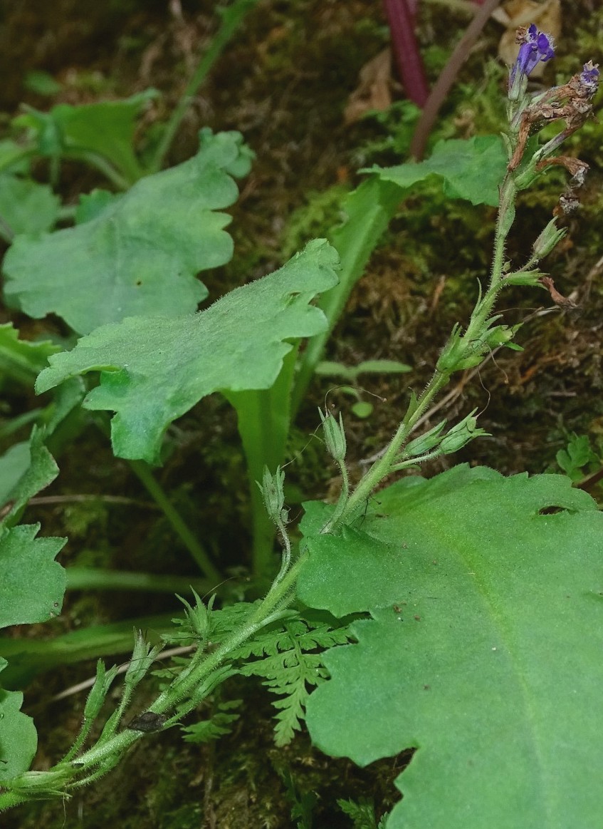 | Pflanze 10 - 20 cm hoch Blüten hellblau, Blüten, Kelch und Kapsel drüsig behaart Blätter behaart > 1