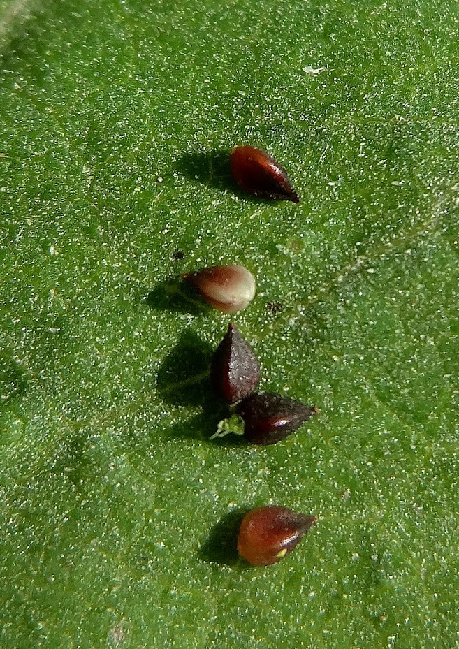Früchte 3- kantig, 2 mm lang, glänzend, dunkelbraun