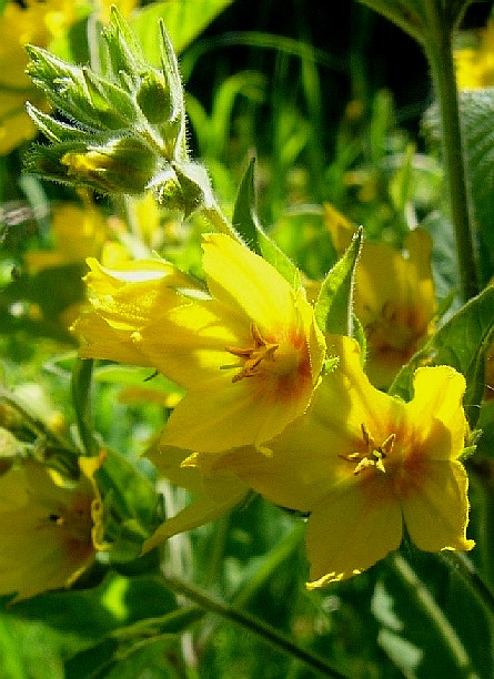 Lysimachia- Blätter grün, Blüten, mit 5 Kronblättern, Kronblätter länger als die Staubblätter