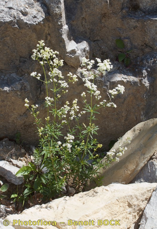 Blüten weiß, 4 mm im Durchmesser, radförmig, Kronzipfel mit kurzer Granne