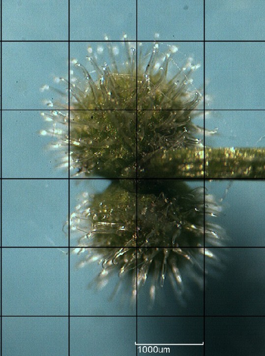 Blüten zu 3 - 9 , grünweiß, 1 mm breit,