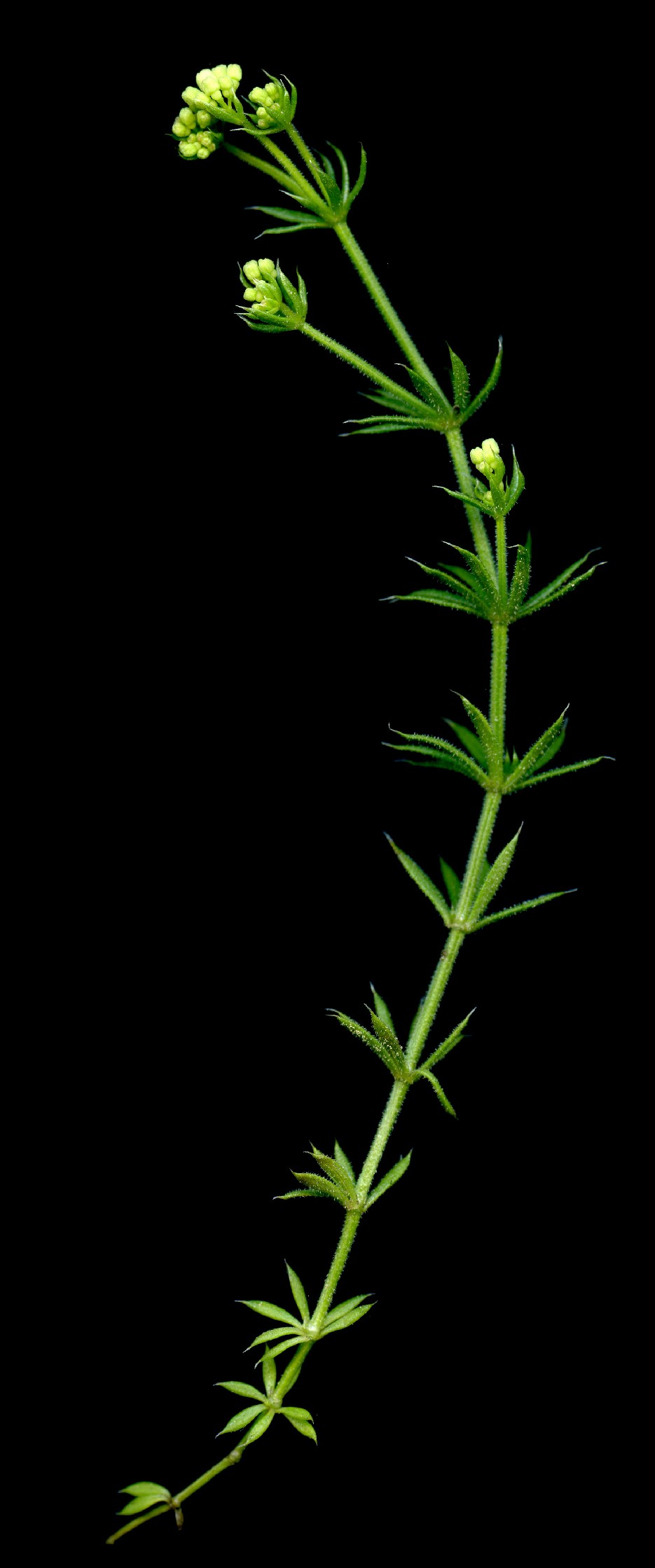 Stängel kahl, ohne Stacheln, Blätter kahl, linealisch, zu 5 - 8 im Quirl, mit 1 Ader, mit