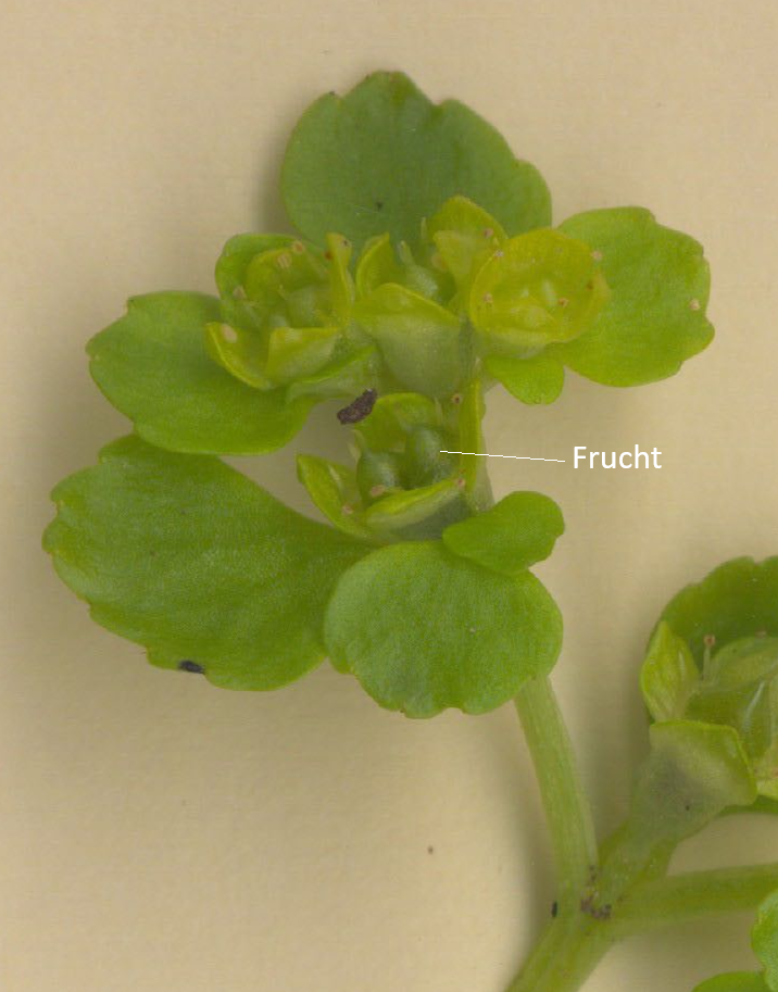 Blätter gegenständig, nierenförmig, undeutlich gekerbt