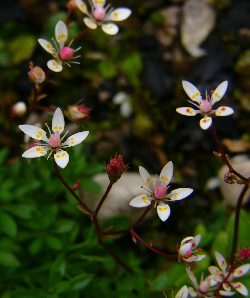 Micranthes - Blüten in lockeren Rispen, Kronblätter weiß mit 2 gelben Punkten