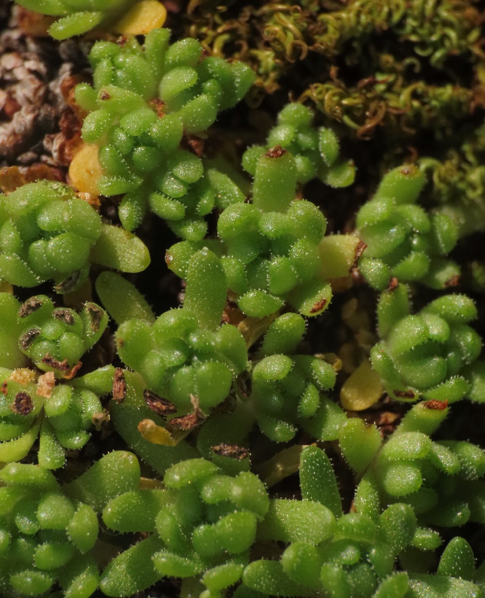 Blätter weich, nicht kalkausscheidend, linealisch, fleischig, ganzrandig, vorne stumpf, ohne Sommerknospen