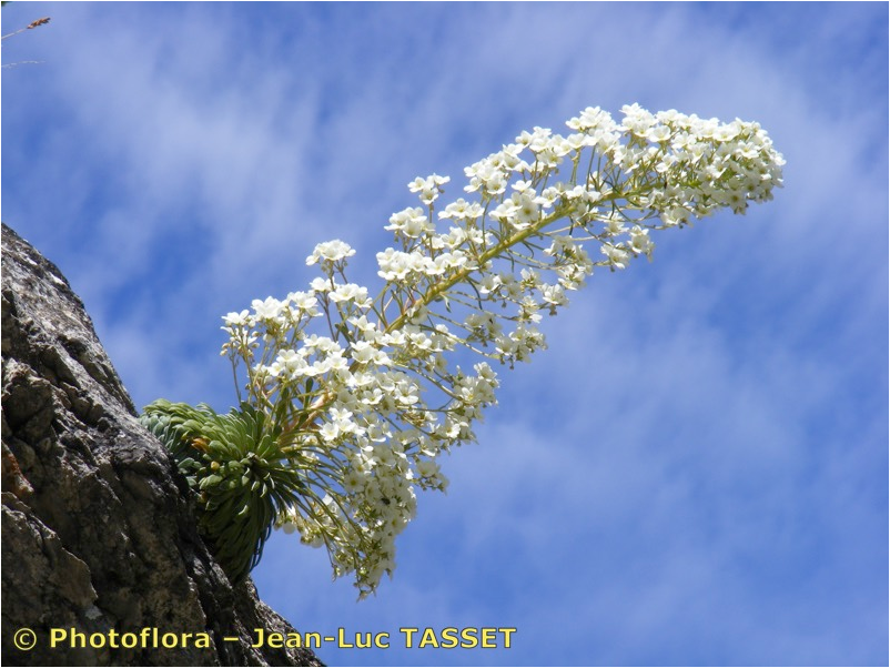 Saxifraga - Blüten weiß, Blütenstand vom Grund an rispig verzweigt, mit bis zu 1000 Blüten,