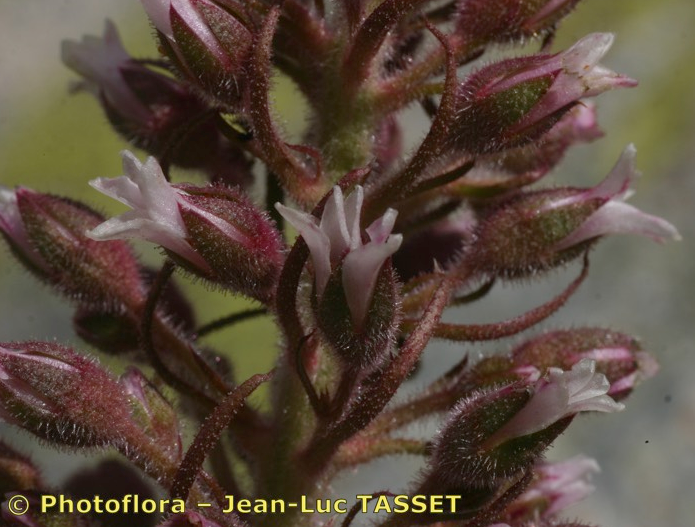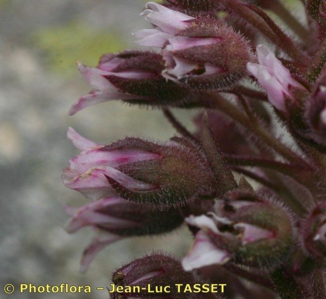 Saxifraga - Blütenstand traubig- rispig, vielblütig, Kronblätter rosa, wenig länger als die Kelchblätter, Blätter weich