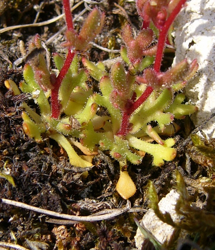 Pflanze 2 - 20 cm groß, Kronblätter weiß, 2 - 4 mm lang Kelch drüsig, Stängel drüsenhaarig, meist rot Stängelblätter sitzend, etwas fleischig, ganzrandig oder 3-lappig, drüsig Kapseln eiförmig, Samen braunschwarz