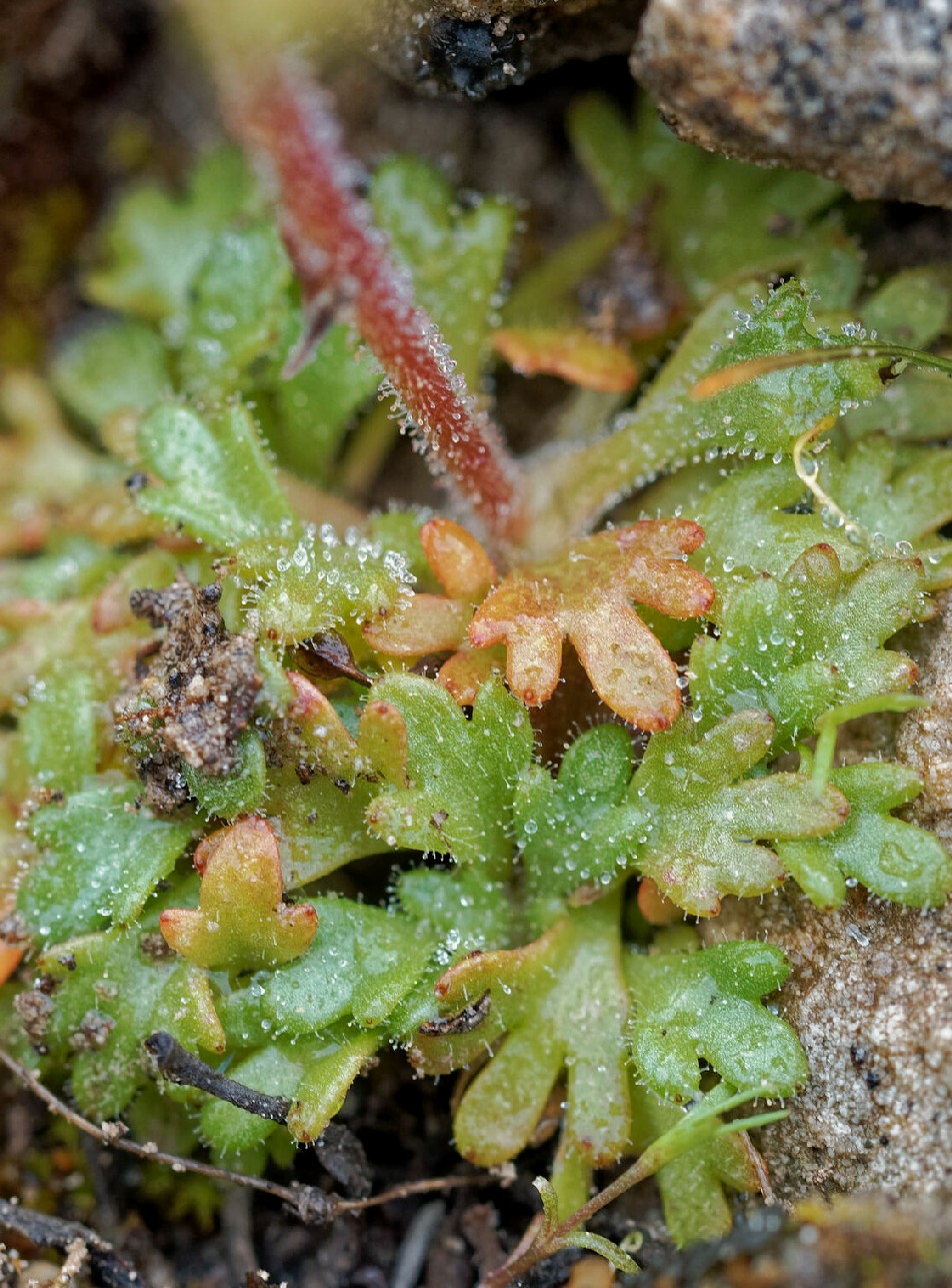 Endemit in Südspanien In den Achseln der Grundblätter befinden sich unterirdische Bulbillen Stängel und Blütenstiele schlank, Kronblätter 5 - 7 mm lang Grundblattrosette zur Blütezeit vorhanden, alle Blätter dreilappig > 1