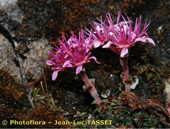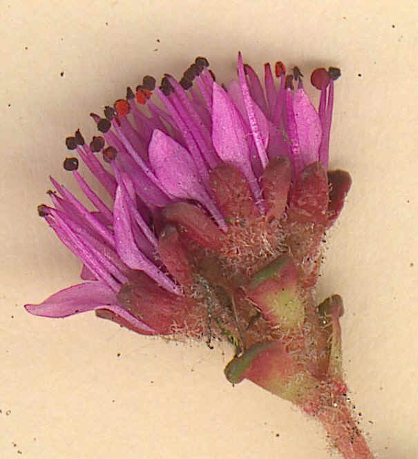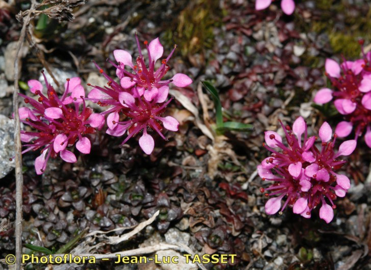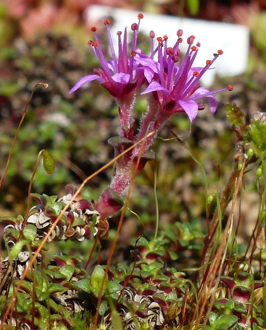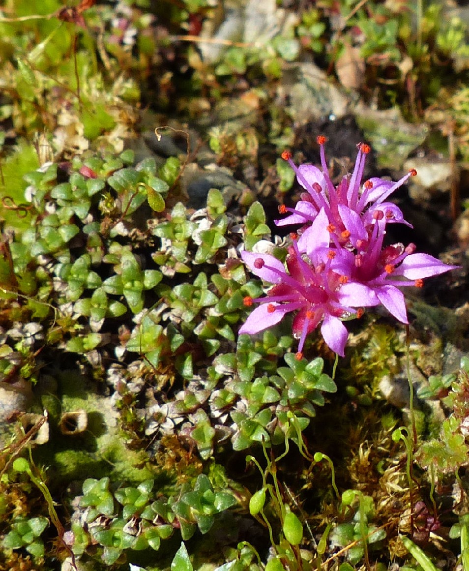 Saxifraga - Blüten rot oder rosa, Stängel 1 - 5- blütig, Staubblätter länger als die Kronblätter