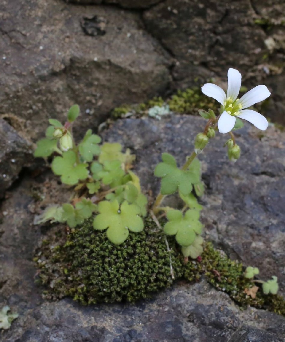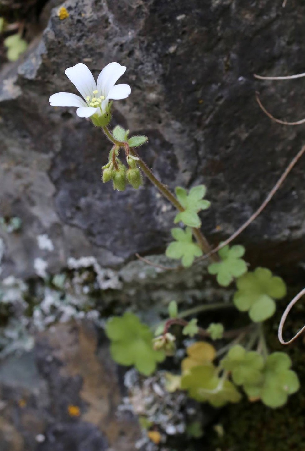 Stängelblätter 1 - 9 mm lang gestielt, nierenförmig, gelappt