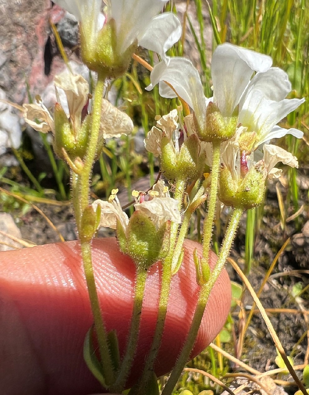 Kelchblätter aufrecht, 3 - 4 mm lang, drüsig, Hypanthium sehr kurz