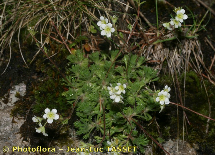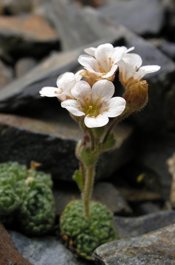 Saxifraga - Pflanze mit sterilen Trieben, Blüten weiß, ohne Punkte,