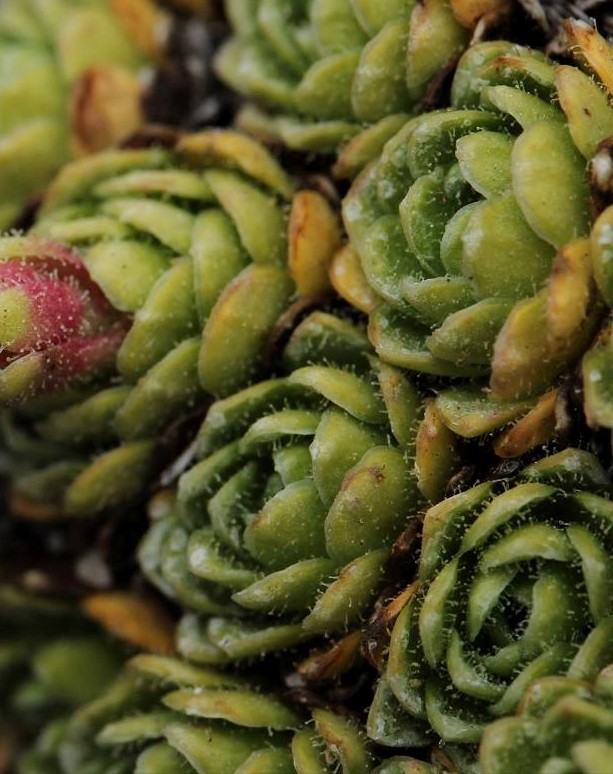 Vegetative Blattrosetten bilden dichte Polster auf den abgestorbenen Blättern