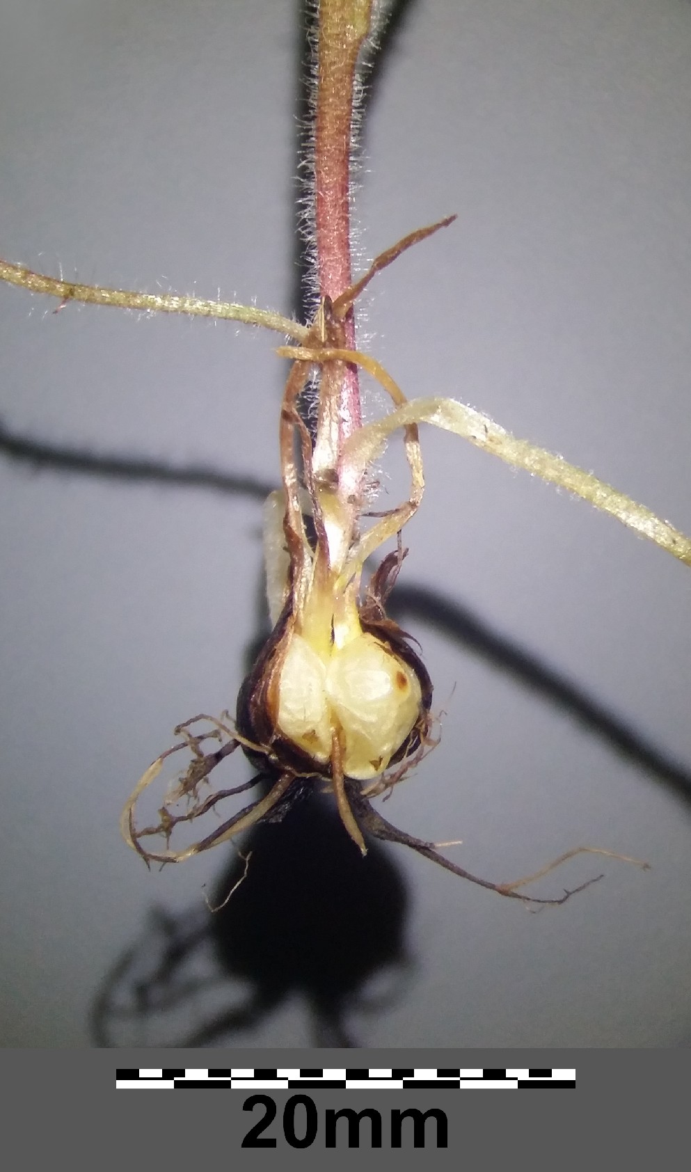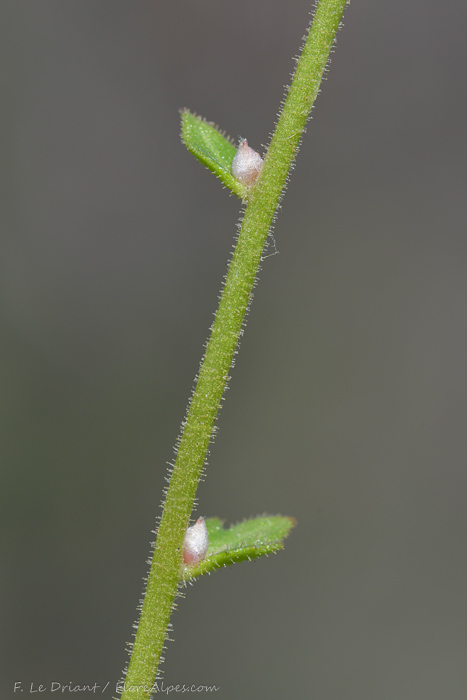Stängel vollständig drüsig, mit 10 - 20, nach oben kleiner werdenden Blättern,