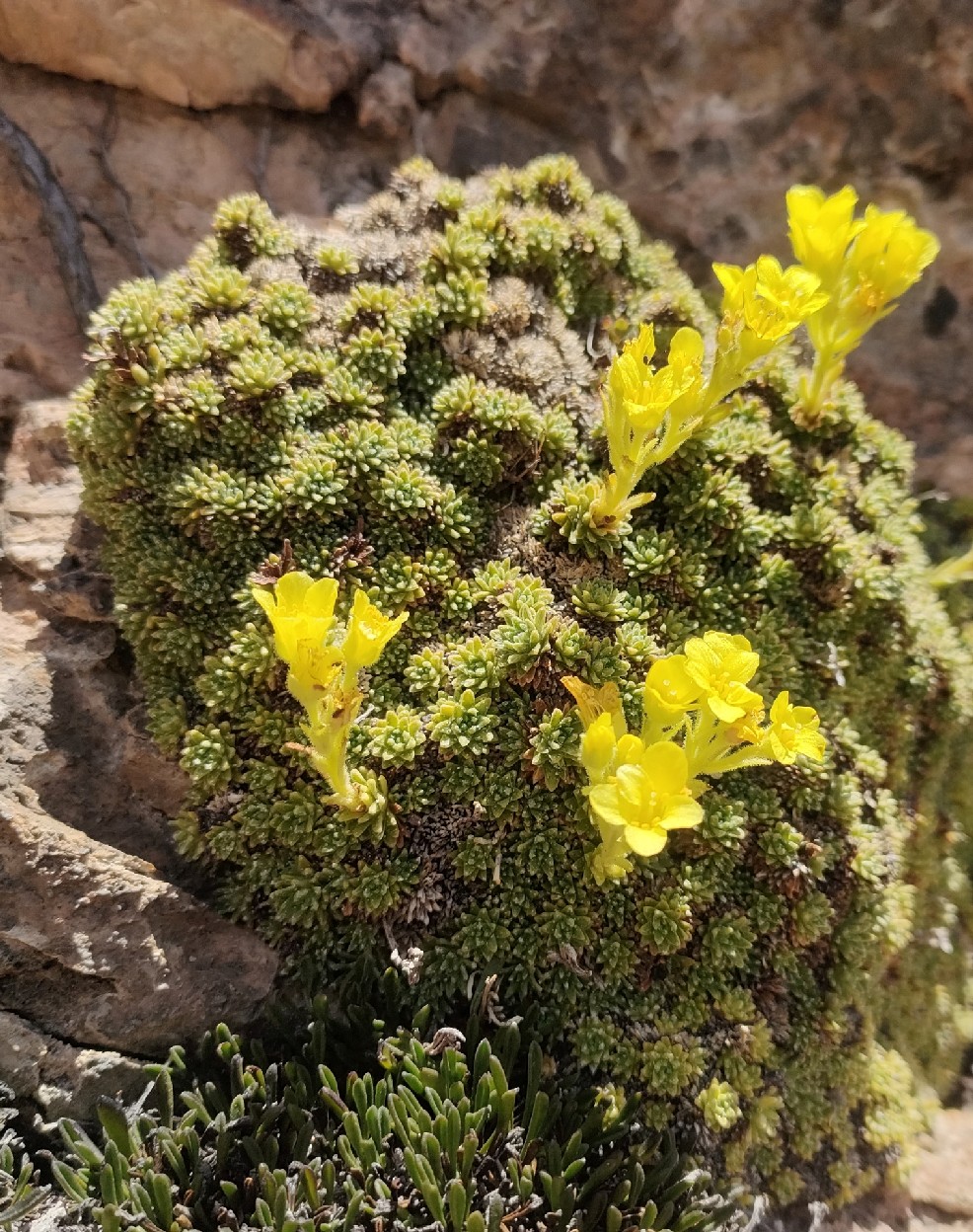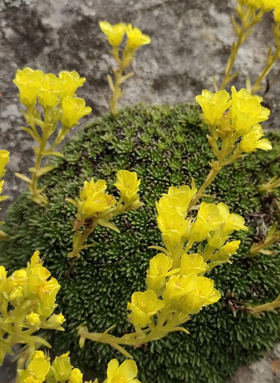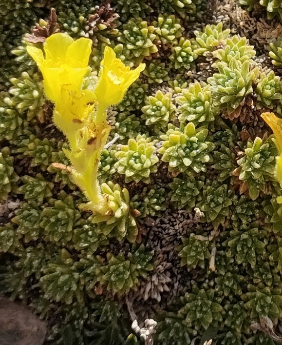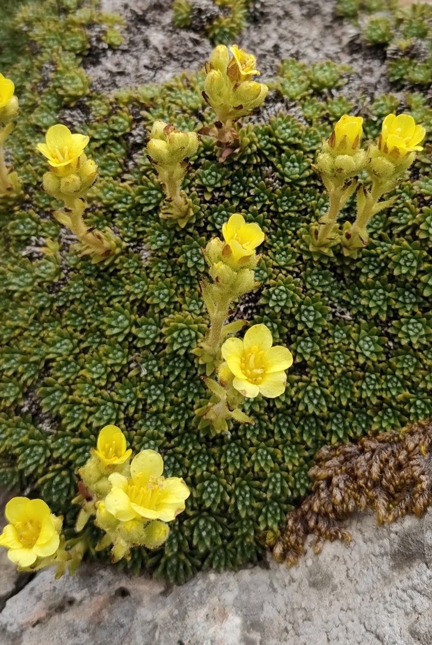 Saxifraga - Blüten zu 1 - 10, gelb, Blätter kalkausscheidend, harte Polster bildend