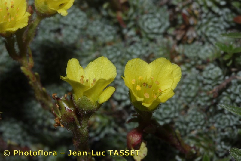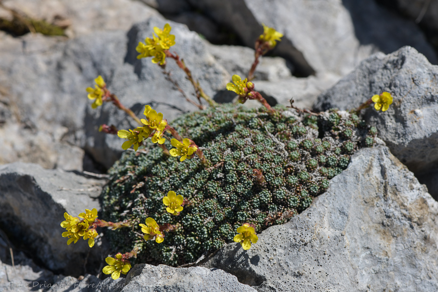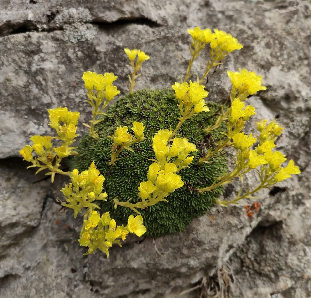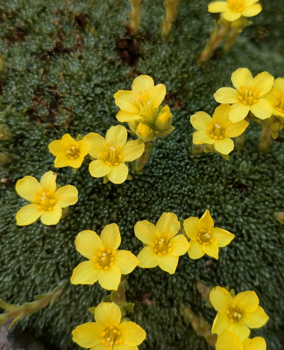 Saxifraga - Blüten zu 1 - 10, gelb, Blätter kalkausscheidend, harte Polster bildend