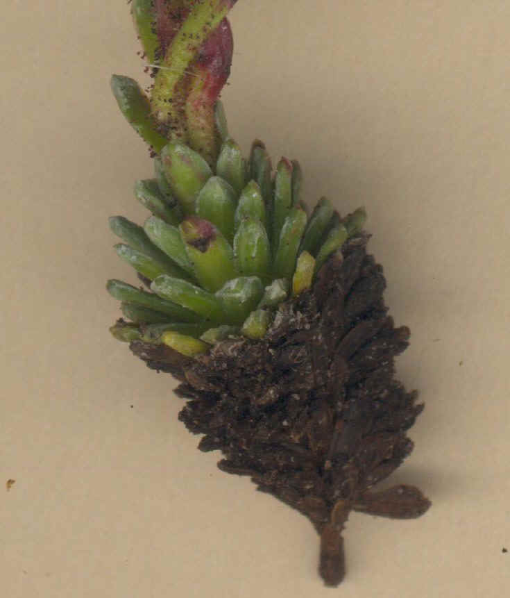 Grundblätter 4 - 7 mm lang, 1,5 - 2 mm breit, +/- rhombisch, abstehend