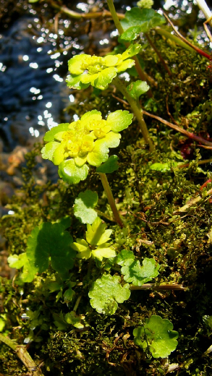 Blüten ohne Kronblätter, mit 4 gelblichen Kelchblättern die von gelblich- grünen Hochblättern umgeben sind > Chrysosplenium (Milzkraut) |
