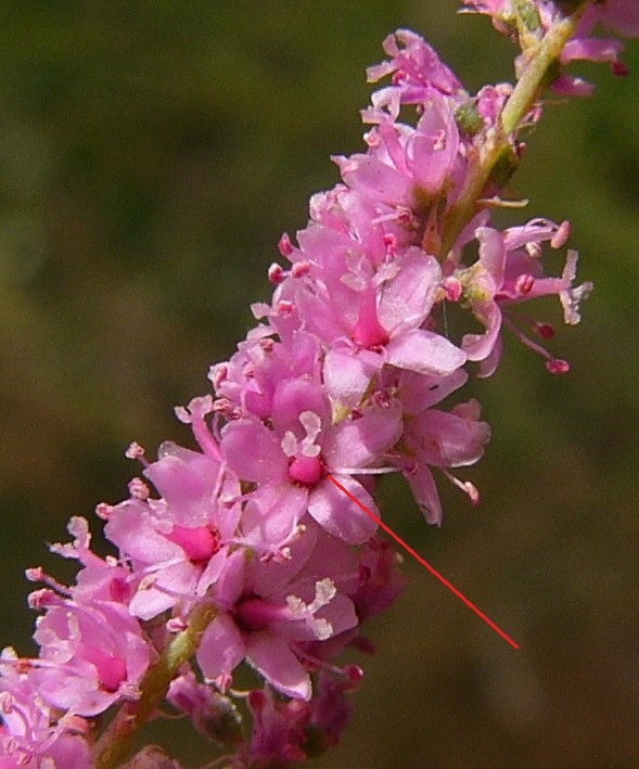 ca. 2 mm lang, rosa, 3 Griffel, 5 Staubblättern Deckblätter meist kürzer als der Kelch, aber deutlich länger als die Blütenstiele Kelchzähne +/- fein gezähnelt Blätter 1 - 2,5 mm lang, sitzend, am Grund verschmälert, vorne