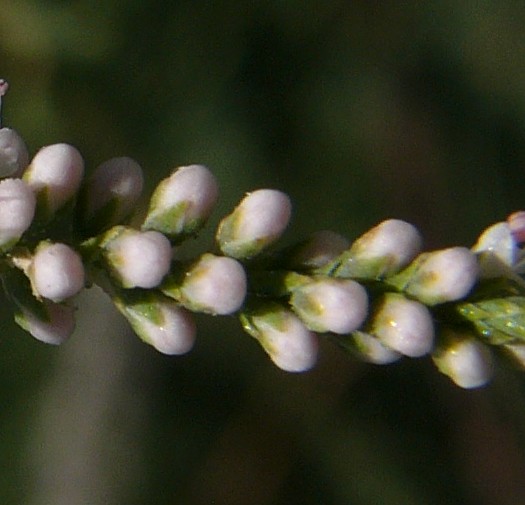 Blütentrauben 30 - 70 mm lang 6 - 8 mm breit, an braungrauen, verholzen Ästen sitzend