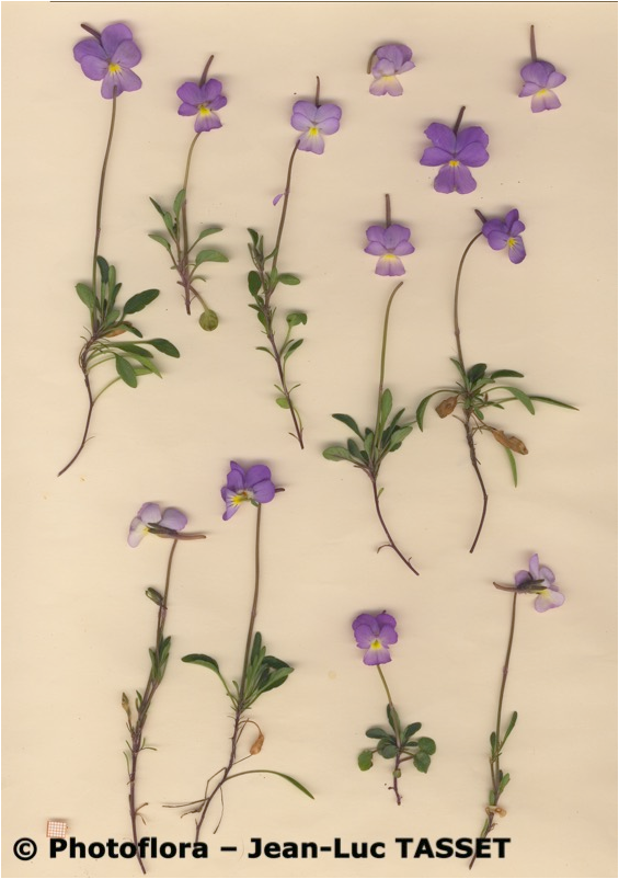 Blüten violett oder gelb, 20 - 35 mm hoch, im Umriss rechteckig