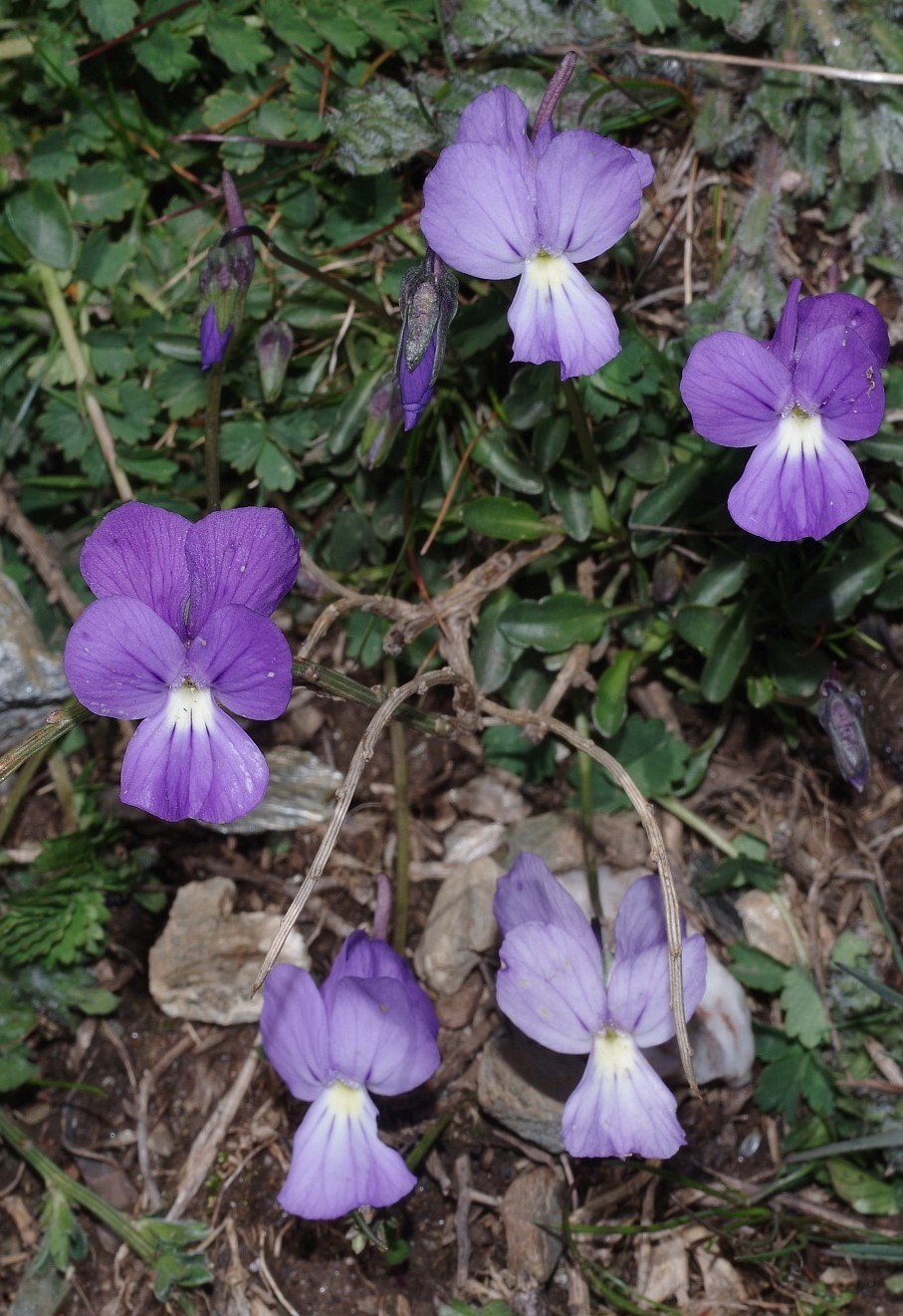 Viola - Blüten hellviolett, mit weißem Schlund, Seitliche Kronblätter aufwärts, Sporn länger als 7 mm