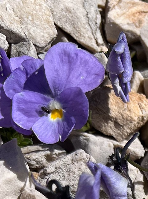 Endemit der Seealpen Blätter behaart, Nebenblätter handförmig geteilt, mit 5 - 7 Zipfeln Sporn gebogen > 1