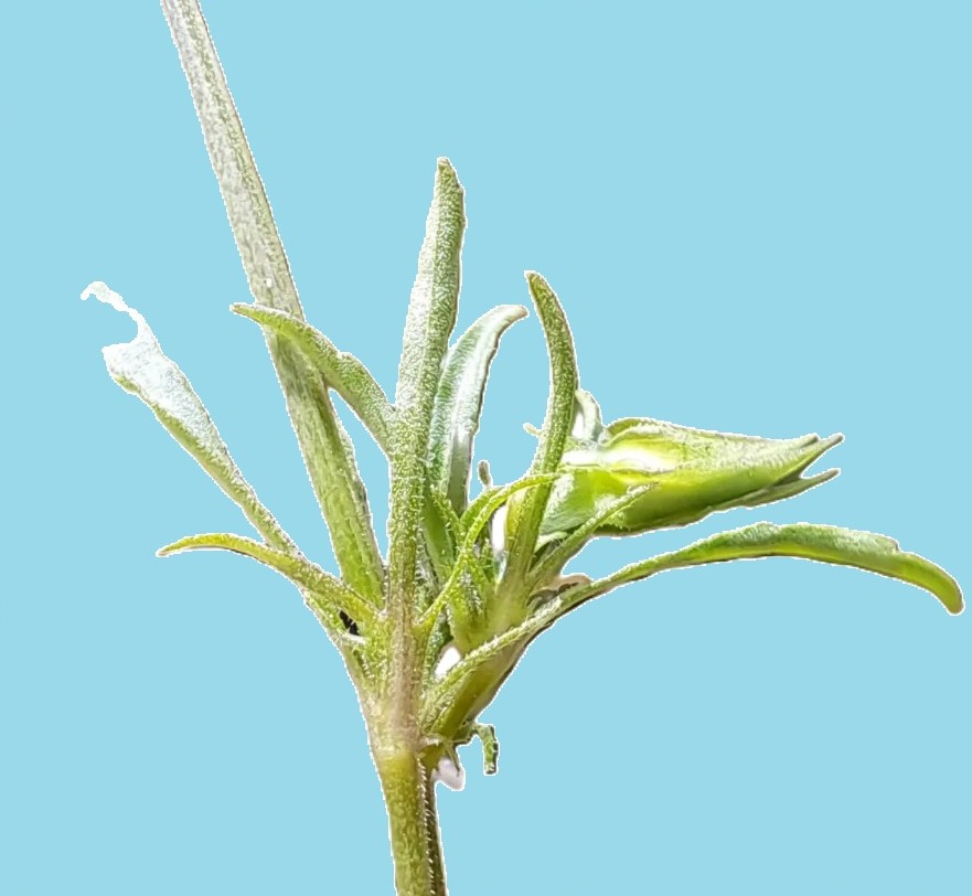 Kelchblätter 7 - 10 mm lang, 1,5 - 2,5 mm breit, schmal lanzettlich, spitz, am Übergang zu den Anhängseln eingeschnürt, ganzrandig oder mit 1 - 3 kleinen Zähnchen jederseits, auf der Fläche kahl, am Rand bewimpert, Anhängsel gezähnt