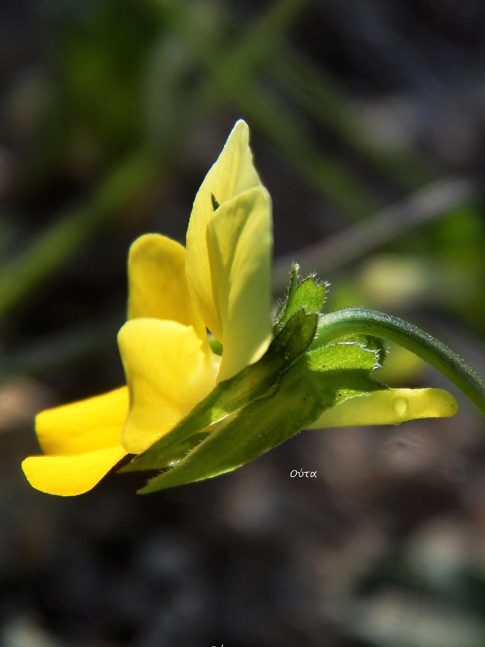 Blütenstiele 5 - 17 cm, im Abstand von ca. 1/4 der Blütenstiellänge unterhalb der Krone sitzend, beiderseits mit 1 - 2 drüsenbesetzten Zipfeln Krone gelb oder blauviolett