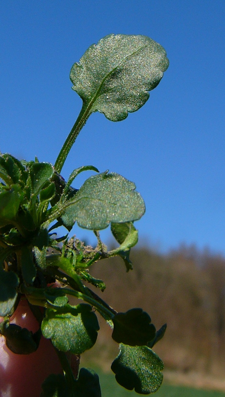 20 - 50 mm lang, lanzettlich, gekerbt, spitz oder stumpf Stängel anliegend kurzhaarig Grundblätter und untere Blätter löffelförmig, lang gestielt,