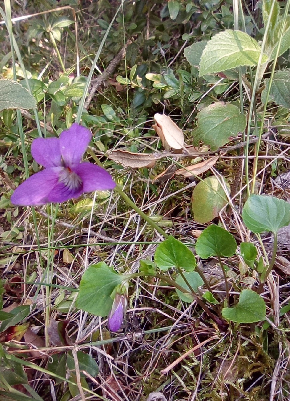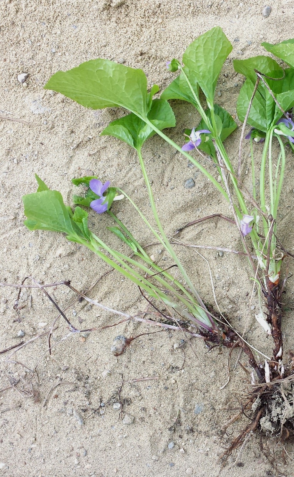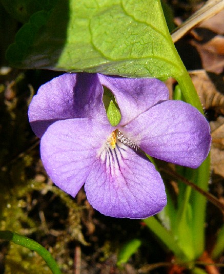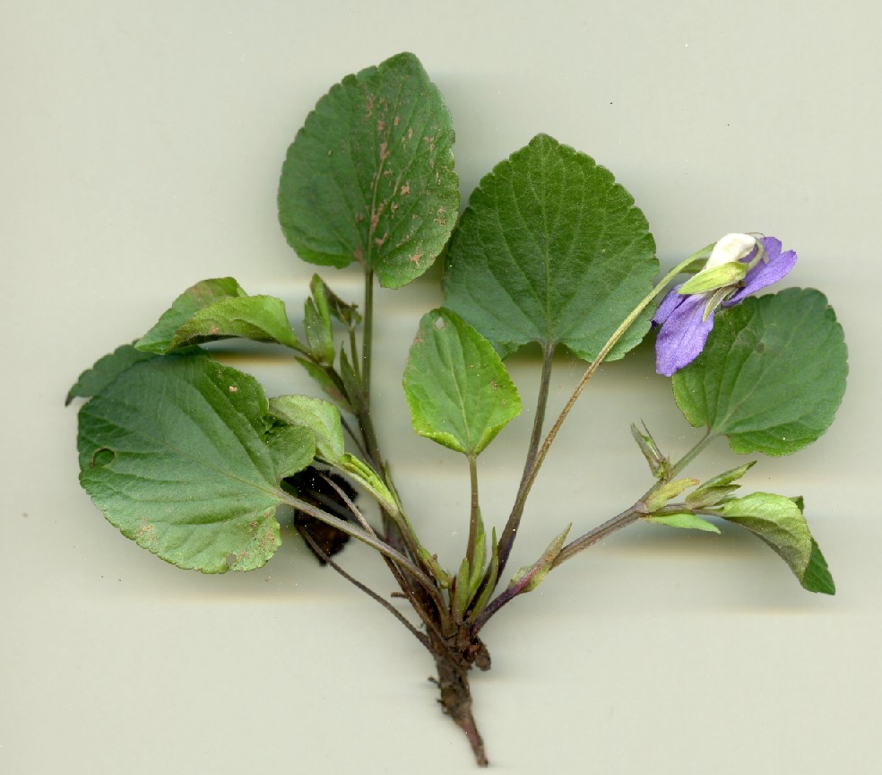 Viola - Kelchblätter spitz, Blüten +/- blauviolett, Sporn weiß, Grundblattrosette vorhanden, Nebenblätter ohne Fransen