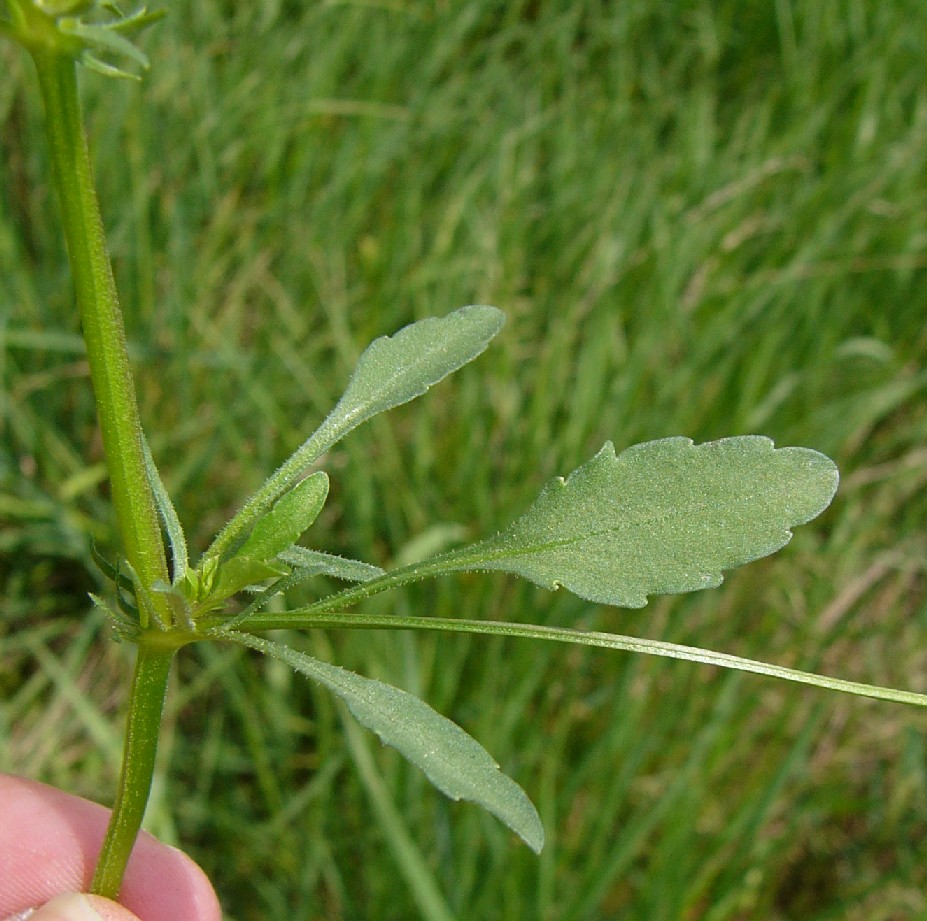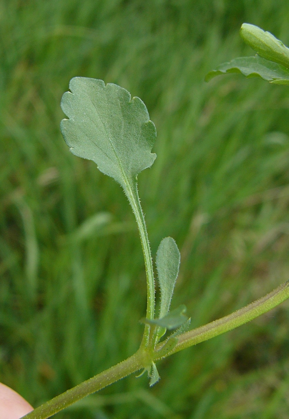Untere Blätter lang gestielt, eirundlich, 8 - 30 mm lang, 5 - 12 mm breit, gekerbt